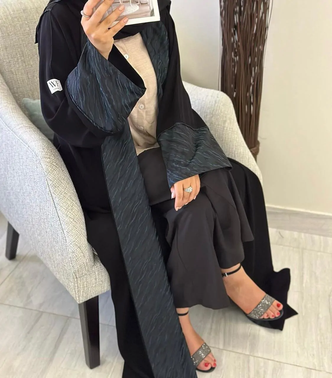 الصفحة الرئيسية اثاث عباية سوداء مفتوحة بتطريز أنيق
